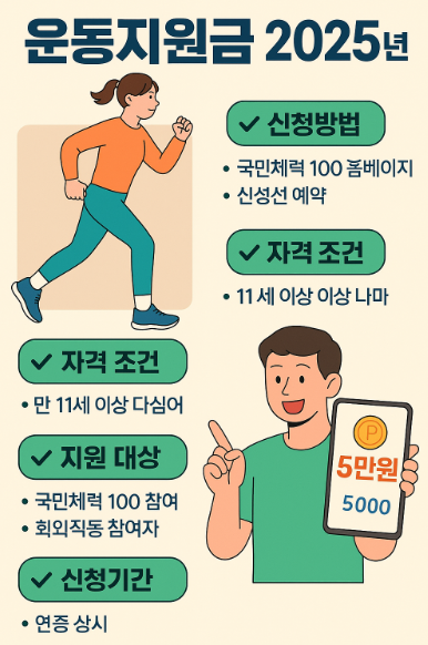 운동지원금 2025년 신청방법 지원 대상 조건 기간 총정리 궁금하다면?