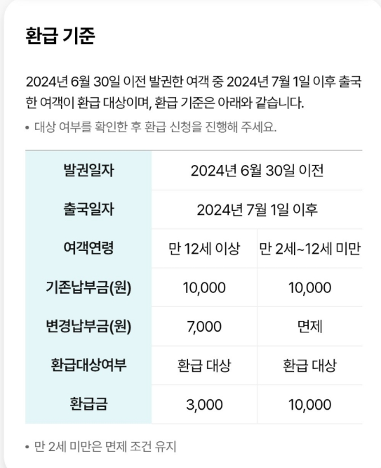 | 실제 출국일 | 2024년 7월 1일 이후 |